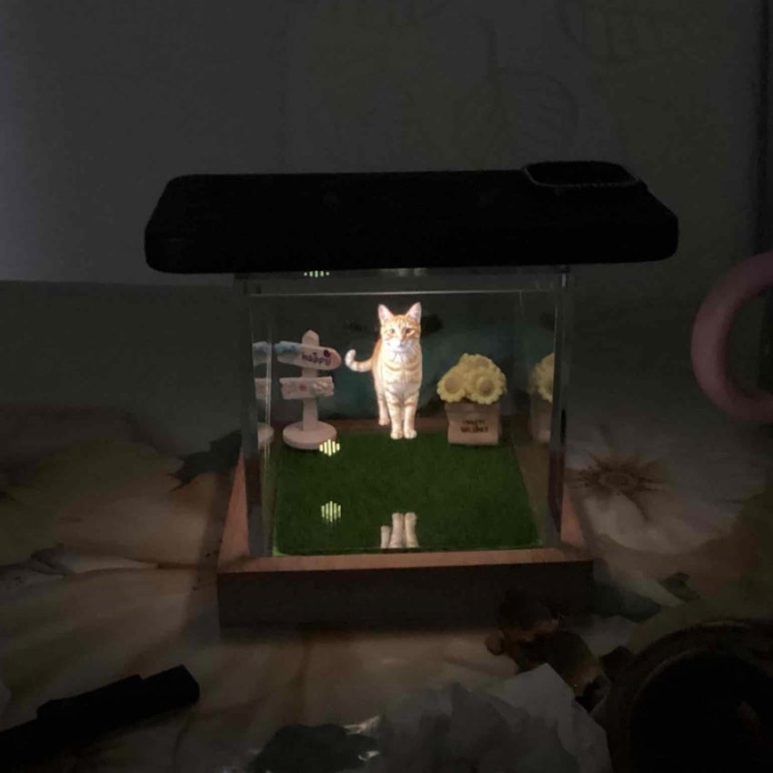 No complex setup required. Simply play the video and place your phone face-down on the transparent box. In that instant, light and shadow converge, and your furry friend will "step out" of the screen, back into your world.